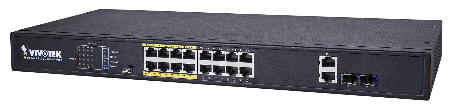 El AW-FGT-180D-250 de VIVOTEK, equipado con interruptor DIP, proporciona el modo ST como modo estándar, ST VLAN como modo VLAN estándar y el modo EX como modo EXtend. Especialmente diseñada para aplicaciones de vigilancia IP, la cámara proporciona funciones estándar 802.3af/at PoE en modo ST, mientras que el modo EX transmite datos y alimentación en un solo cable hasta 250 metros a 10 Mbps a través de 8 puertos EX para cámaras IP PoE de largo alcance. . El AW-FGT-180D-250 también agrega un rango adicional del 20 % de tolerancia de voltaje de entrada (280 V CA 4 horas, 300 V CA 1 minuto) y protección contra sobretensiones de la alimentación de CA y protección contra sobretensiones PoE para evitar daños causados por una alimentación de CA exterior inestable, rayos sobretensiones y picos de energía.